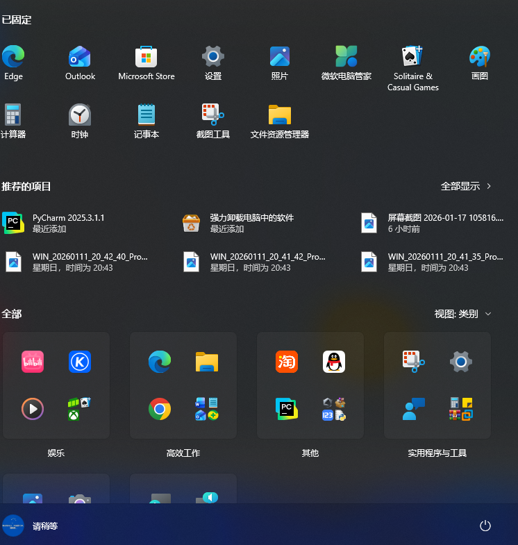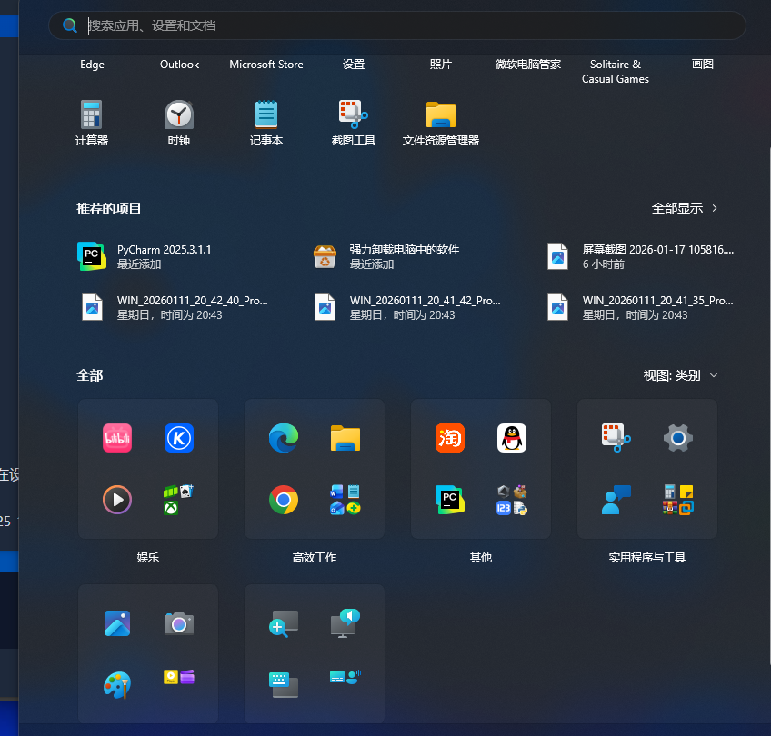 Windows11 在安装 2026/1 的安全更新 KB5074109 后,开始菜单变成这样,应用菜单不是分体了。此外,还可以切换各种格式,比如这样